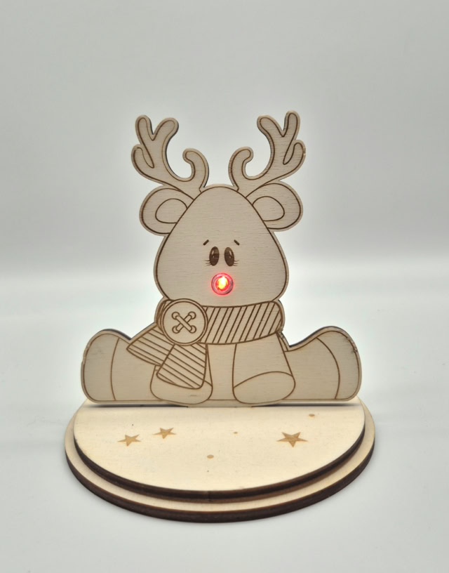 Ein liebevoll gestaltetes Holzrentier, das durch die rote LED-Nase Wärme, Freude und weihnachtliche Magie in jeden Raum bringt. 🦌❤️✨
